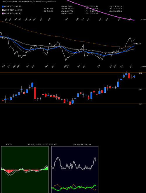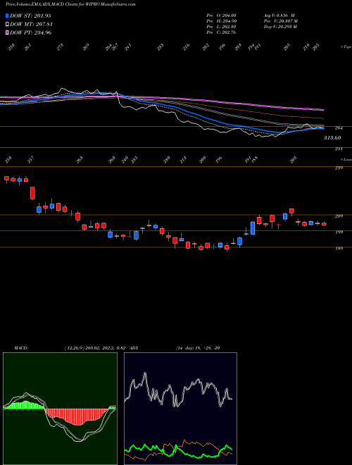 Wipro share price and simple moving average chart.